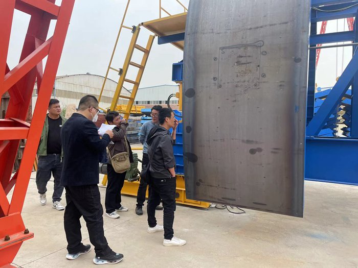 2023年4月13日,中鐵六局集團有限公司沈陽地鐵一號線1標(biāo)項目經(jīng)理部檢查驗收專家組蒞臨我廠,對訂購我廠生產(chǎn)的二襯臺車進行檢查測量驗收。在為期一天的驗收工作中,通過聽取現(xiàn)場匯報,實地測量,調(diào)試、繪圖3D模擬,對我廠的二襯臺車進行了細(xì)致的檢查驗收。